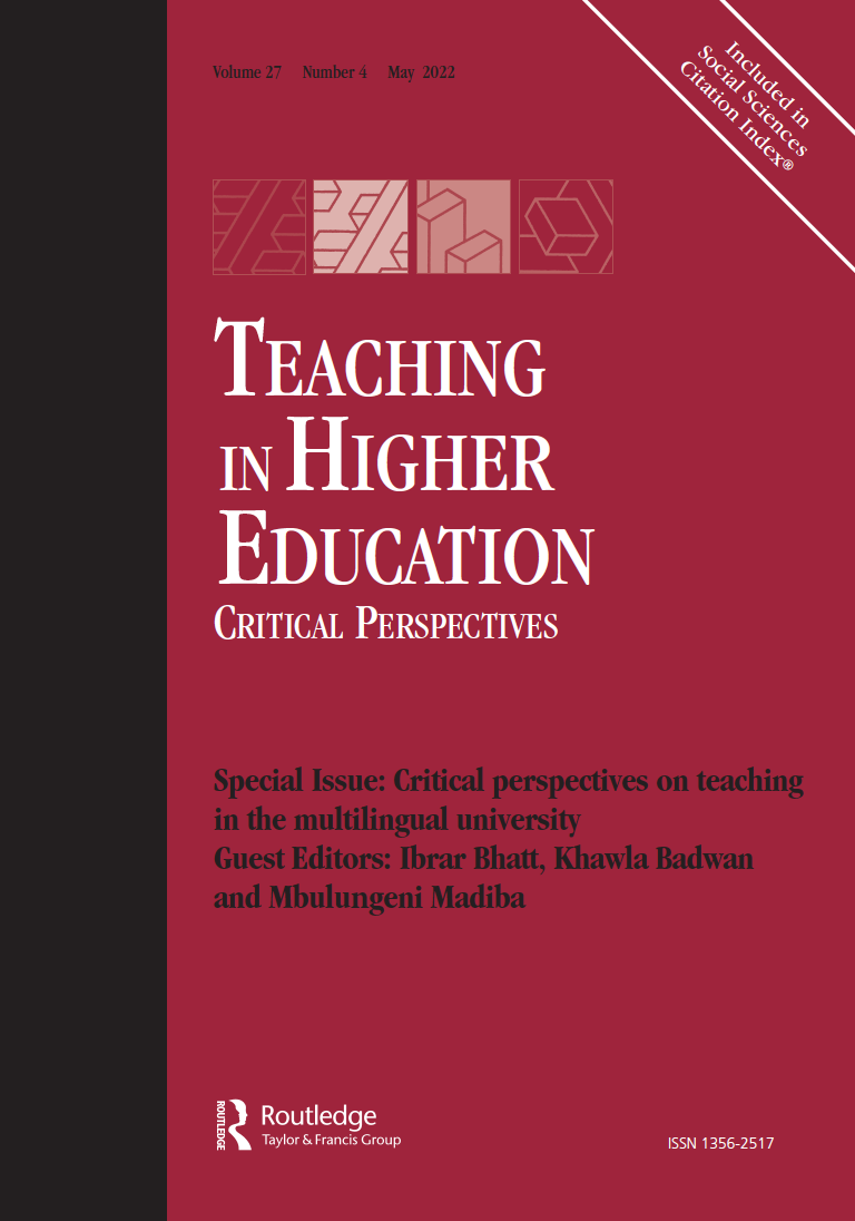 (2022) Critical perspectives on teaching in the multilingual university, Teaching in Higher Education, 27:4, 425-436, DOI: 10.1080/13562517.2022.2058295